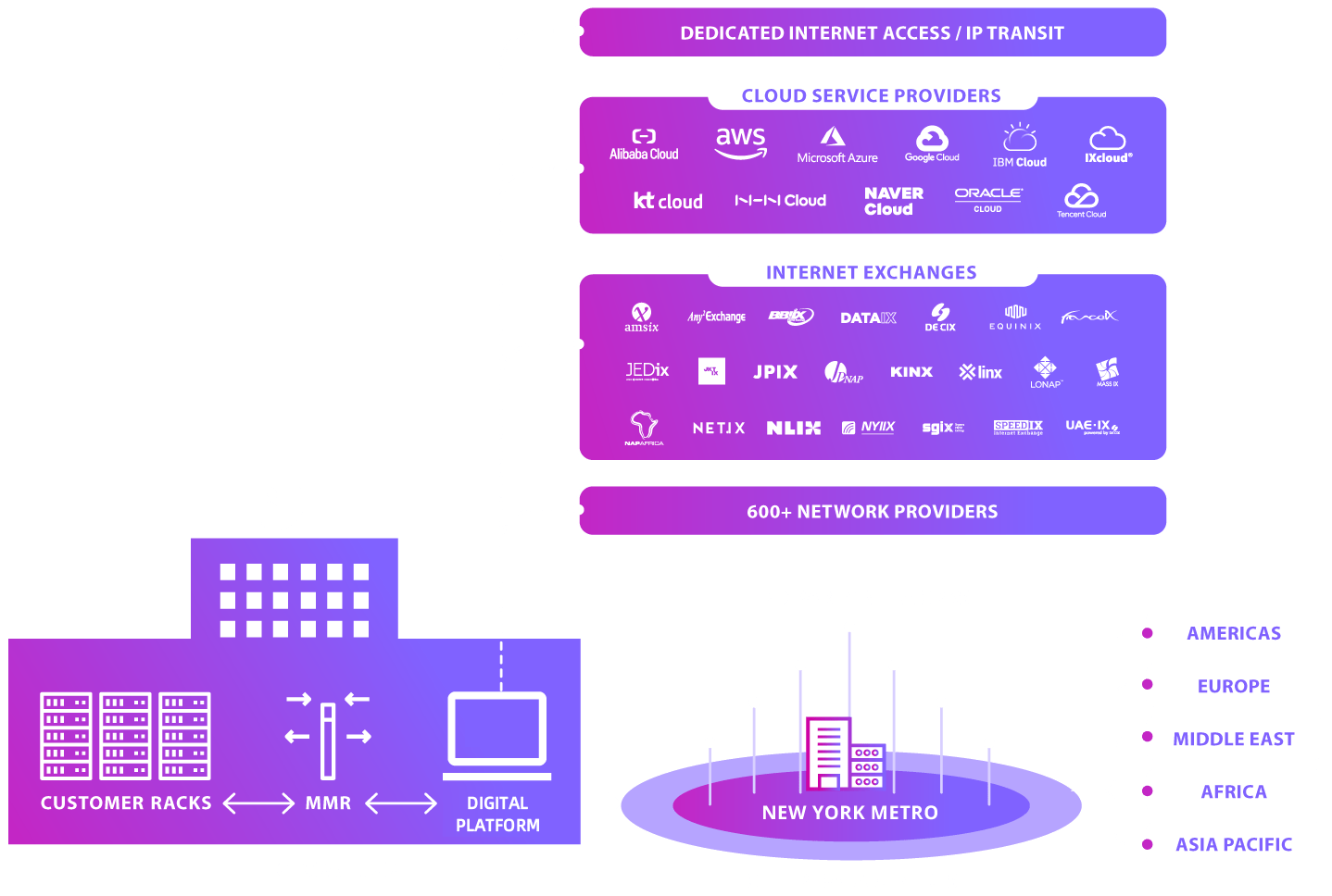 What’s more, amplify your network presence internationally through connectivity to leading Internet Exchanges (IXs) and Cloud Service Providers (CSPs) worldwide – achievable with just a single port. Through Digital Platform, our award-winning network-as-a-service platform, flexibly provision and monitor your end-to-end connections on-demand to stay adaptable and agile in today’s rapidly evolving landscape.
